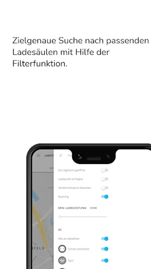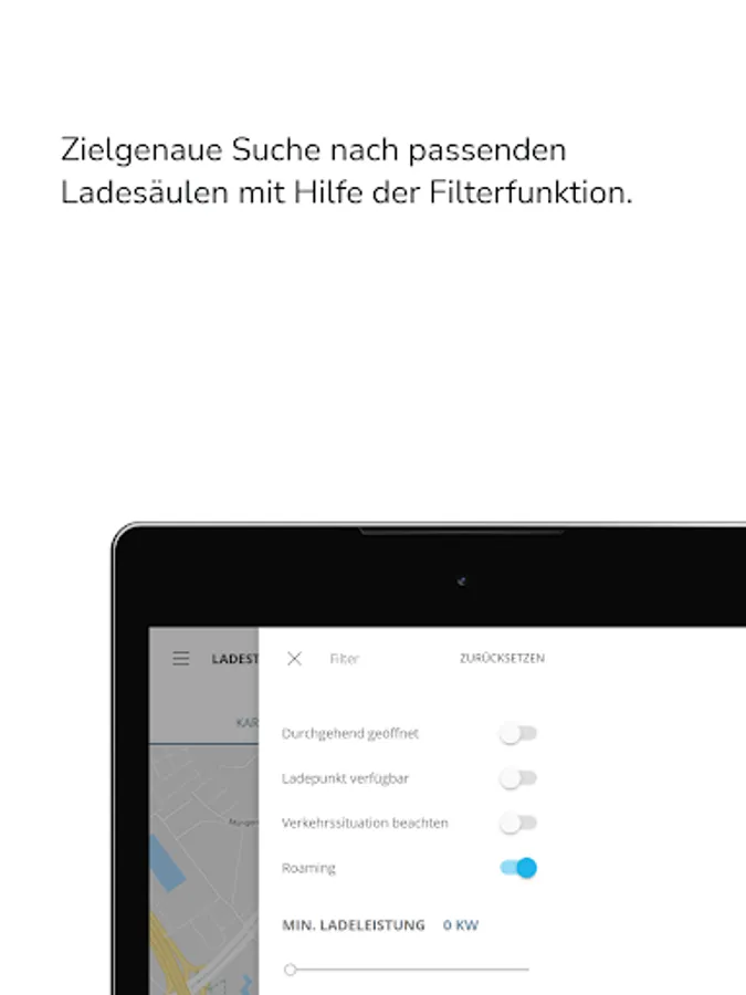 The clear location map shows you all charging stations as well as available charging points and possible disruptions in real time. Various filter options make it easier for you to search for a suitable charging station; Favorites can be saved for future visits.