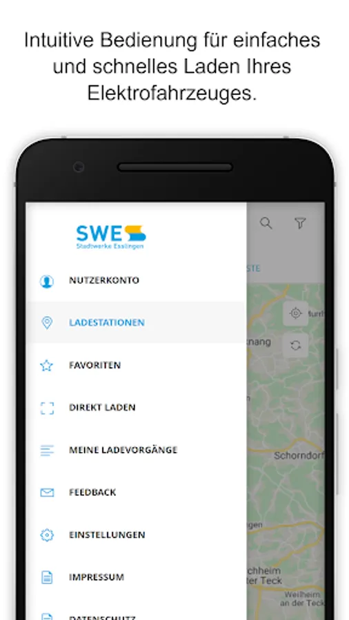 With the SWE charging app, you can activate all charging stations that are connected via roaming. As soon as your vehicle is connected to the charging station, you can activate the charging process via the app and, in addition to location information, you will also receive information on the currently applicable usage fees.