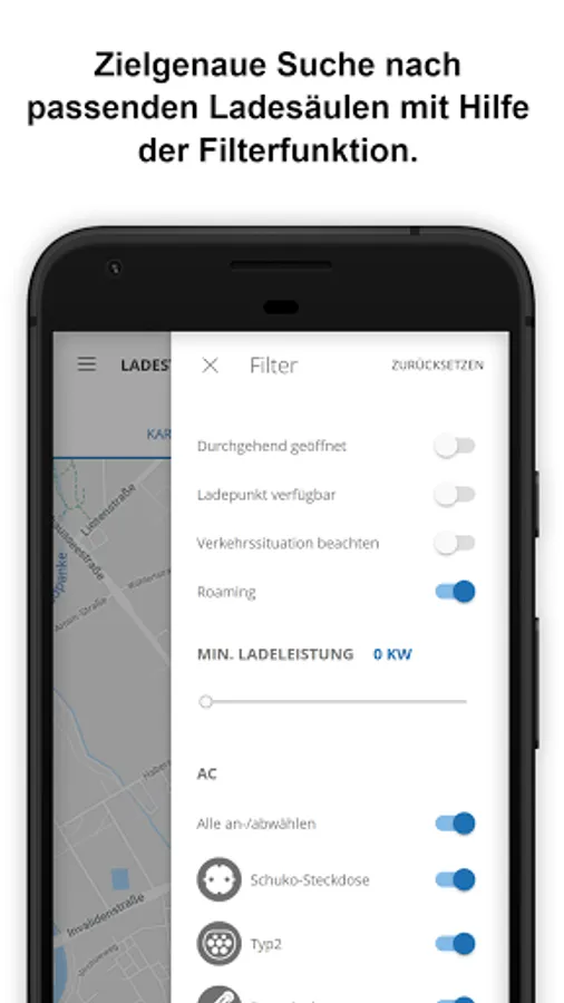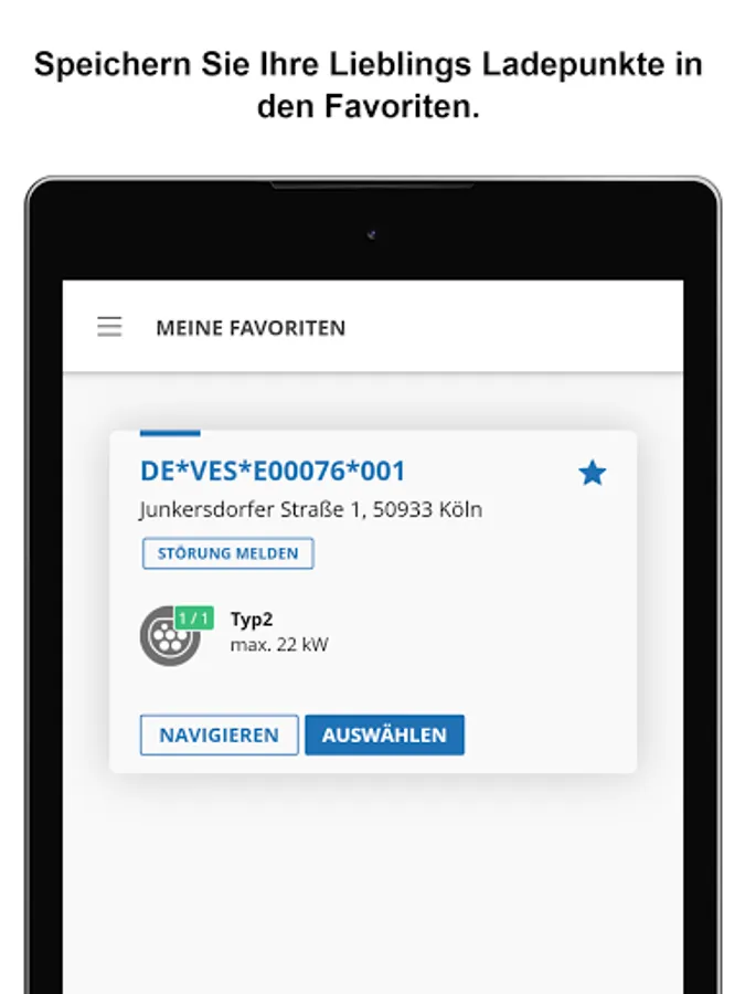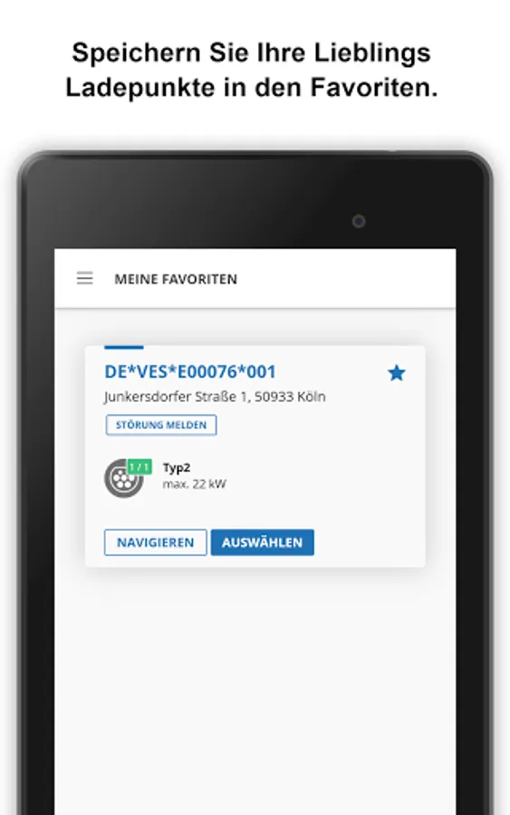 Charging stations differ according to the charging speed (AC/DC). To quickly find the right charging station, you can filter and sort as you like in the app. If you have found a charging station that suits you best, simply add it to your favourites.