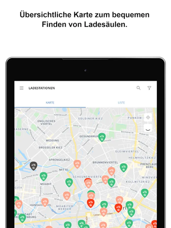 - Quick check of the availability of the charging stations in your area