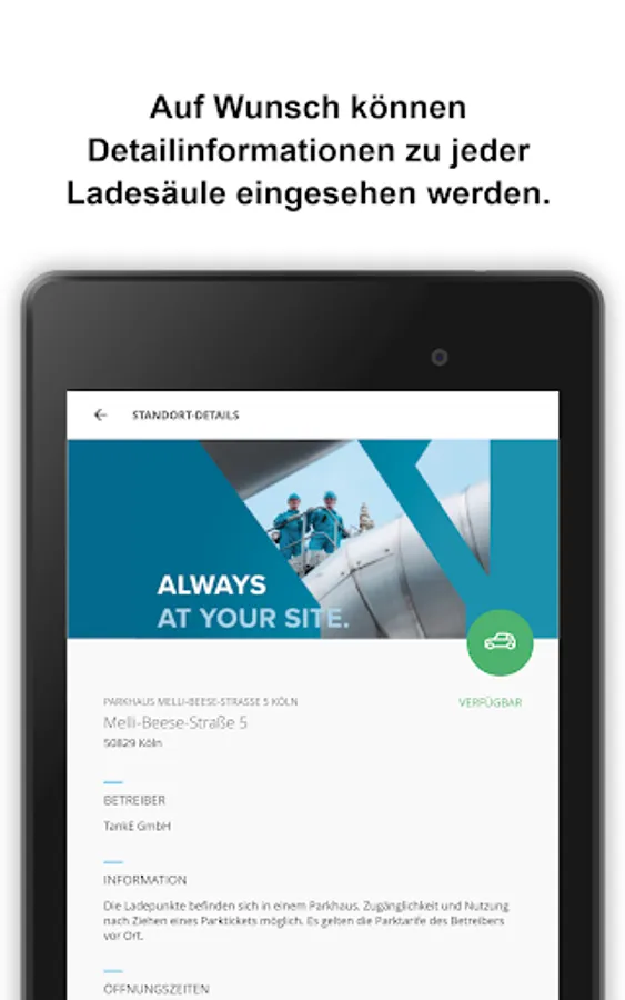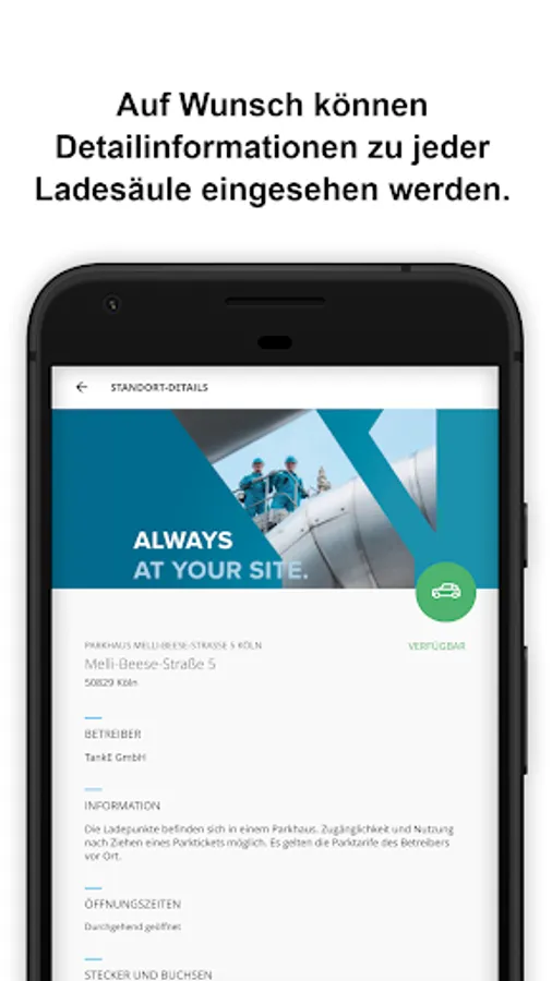 In addition, the app provides convenient access to the charging stations of all TankE partners within the TankE network. You can find all information about the TankE network, the affiliated partners and frequently asked questions and answers at www.tanke-netzwerk.de. Other supraregional partners (currently over 28,000 charging points across Germany and over 65,000 charging points across Europe) are optionally available on request. The number of available charging points is currently increasing daily.
