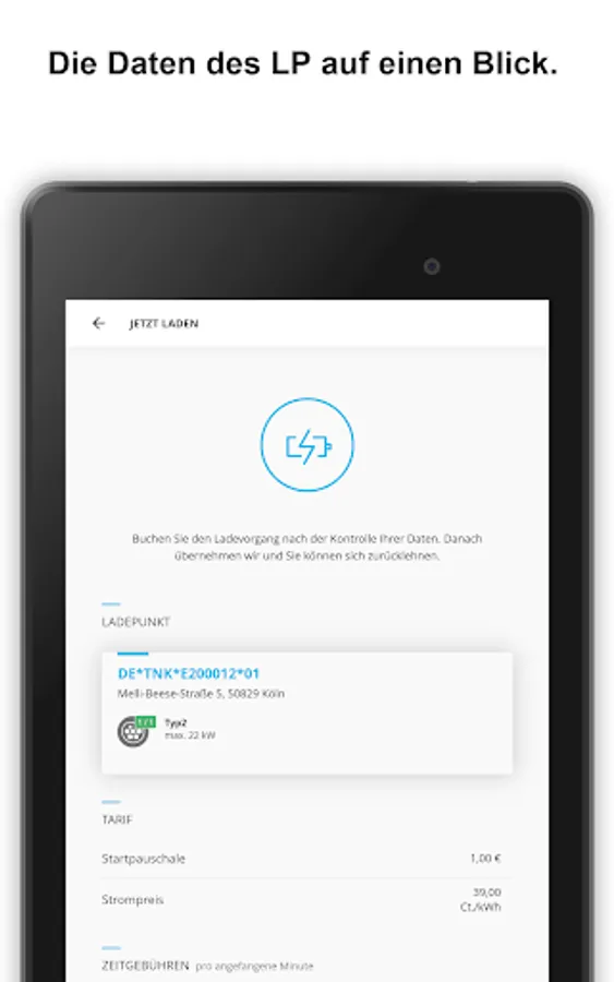• Convenient activation via app and display of the current charging tariff