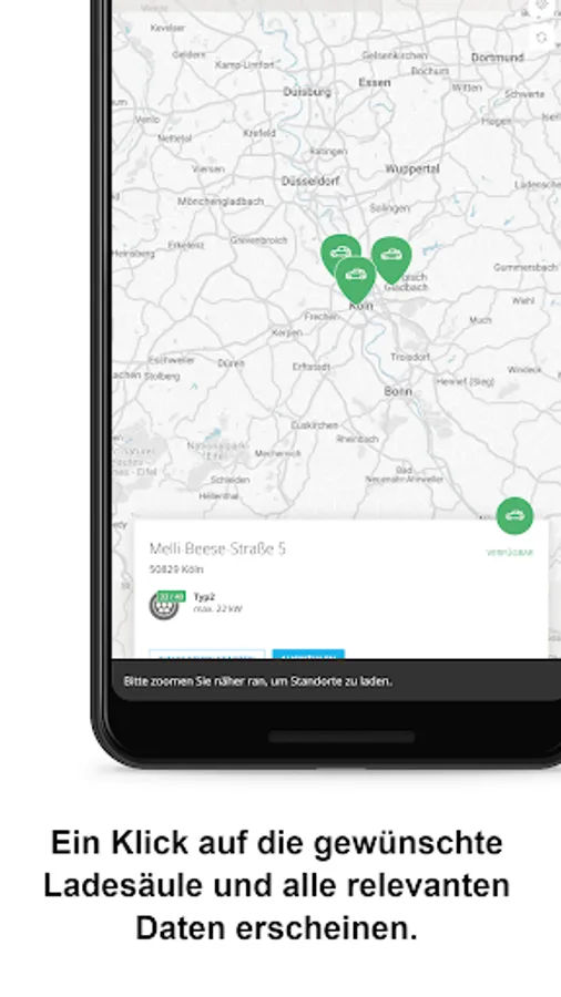 Employees with a private e-car have access to charging points provided by the employer. You can call up the current status of the company's own charging stations and start charging processes quickly and easily via the app.