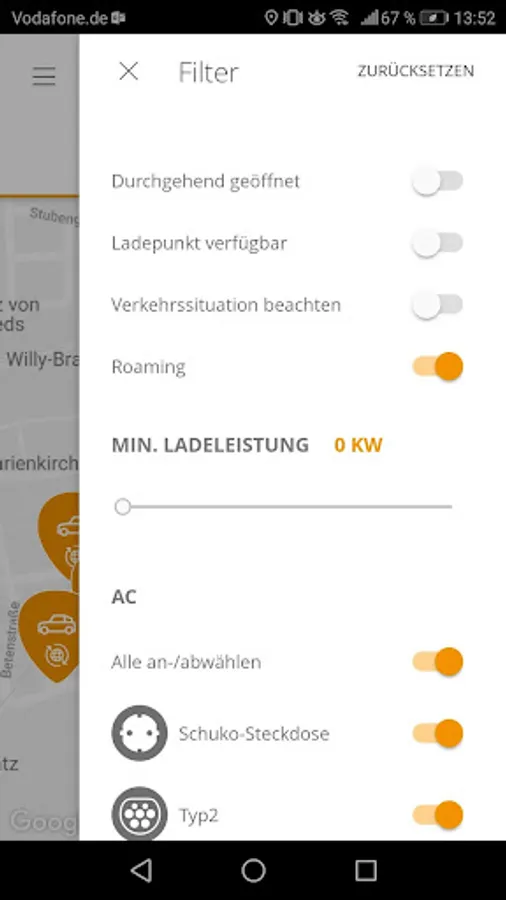 With additional filter functions, you can customize your search easy. For example, according to current availability, opening times, maximum charging current and connector types. The built-in navigation guides you specifically and directly to the selected charging location. Just before the start will give you all fare information and can be with the help of favorites start shortly charging.