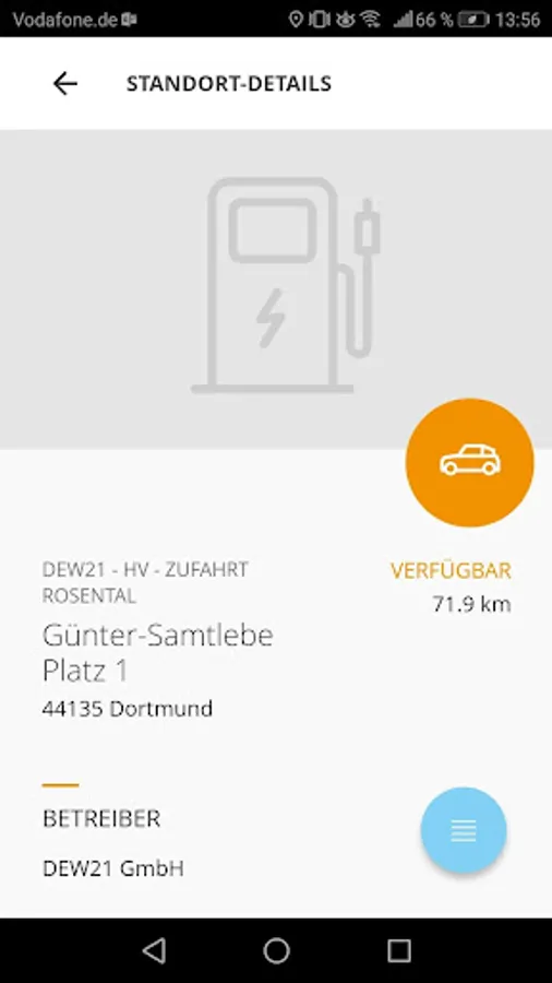 The driving-e LadeApp of DEW21 helps you quickly and reliably in the search for a suitable charging station for your electric vehicle. A map with real-time traffic information, or by a list view, you can quickly find a charging point in your area.