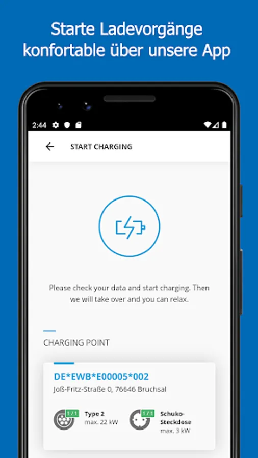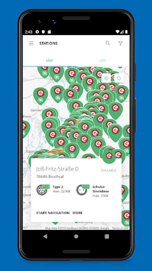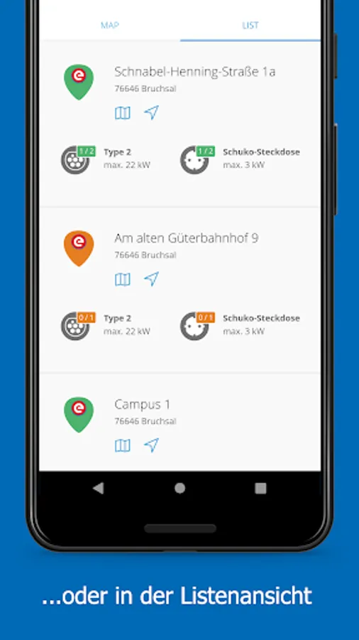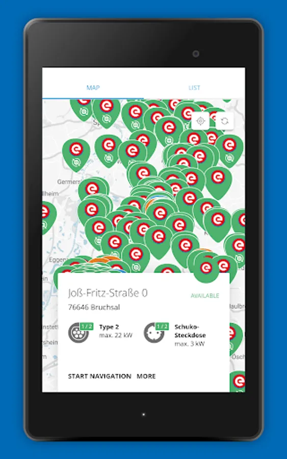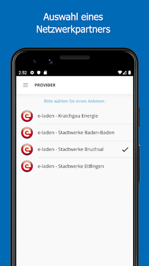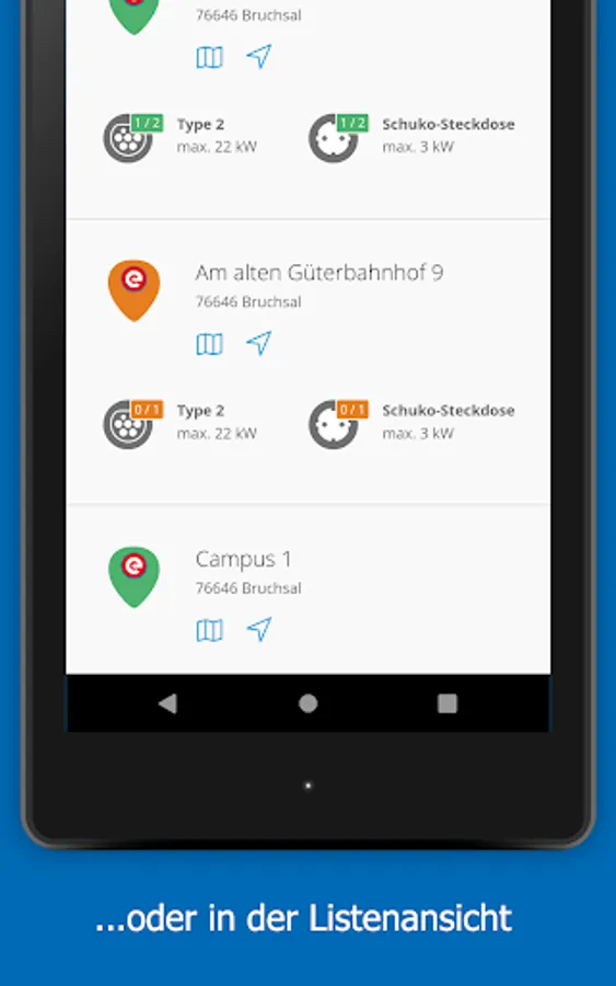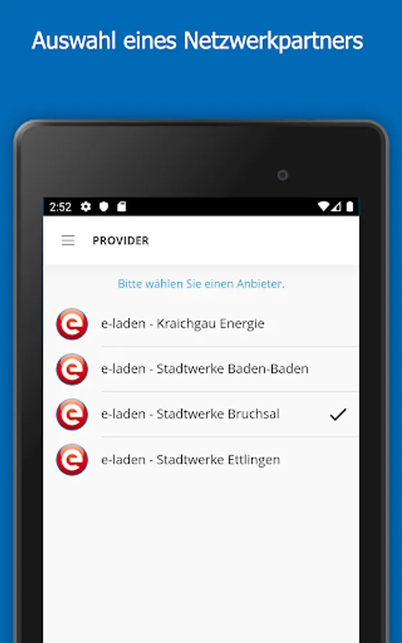 You are looking for an e-charging station in Bretten, Bruchsal or Ettlingen? Simply click the desired city. The overview shows you the right e-charging station in your area. With us invite invite 100% certified green electricity from hydropower.