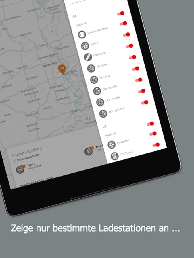 See through our app the availability of the charging station, the plug type and the price. Through our integrated navigation, the app leads you unerringly to the nearest charging station.