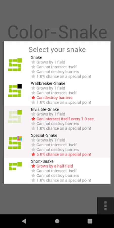 Color Snake is a modern variation of the classic Snake. Point of the game is to increase the levels of the snake and reach achievements, in order to reach even higher points.