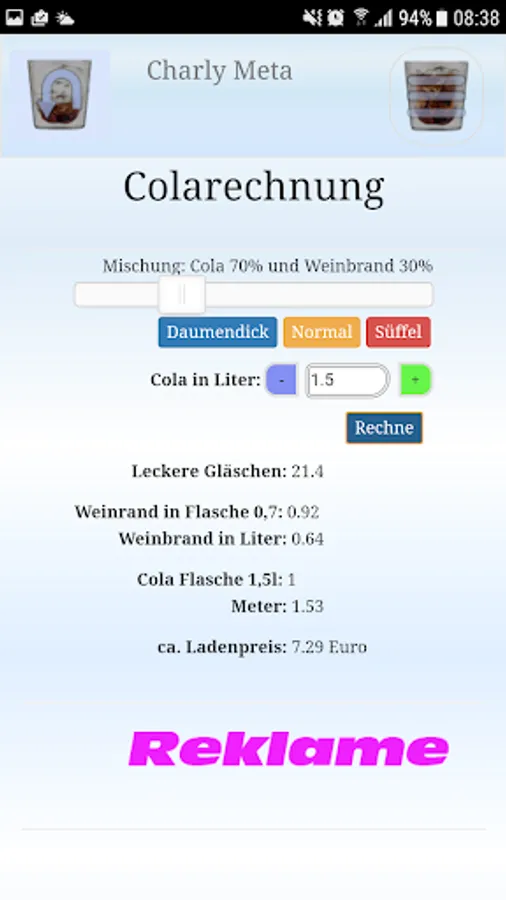 You like to drink Charly (Cola with brandy possibly also Brandy & Cola) or not? No matter!