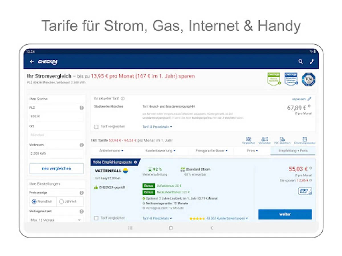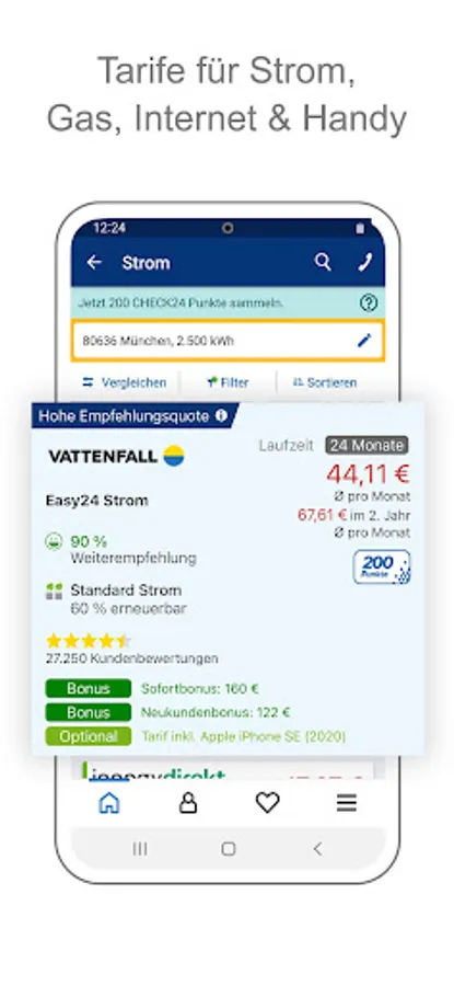 Download Germany's best comparison app and easily manage all deals, bookings, contracts and purchases in your personal customer account.