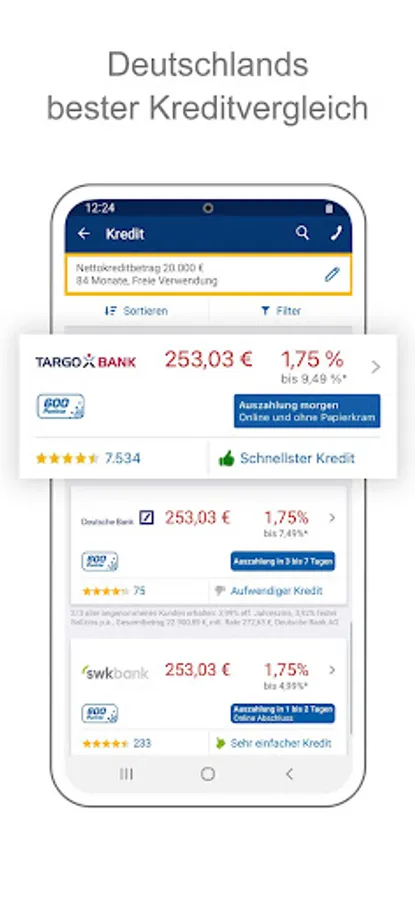 Compare, switch, save: e.g. B. with the loan comparison over €2,000, up to €850 with Germany's largest car insurance comparison, up to €1,000 with the electricity and gas comparison and over €1,000 with the travel comparison.