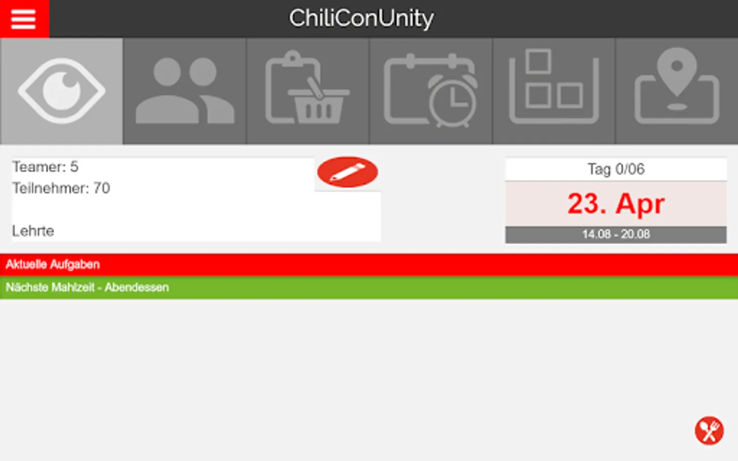 The ChiliConUnity app will help adult and youth groups in meal planning, shopping and preparing the warehouse management for retreats and events.