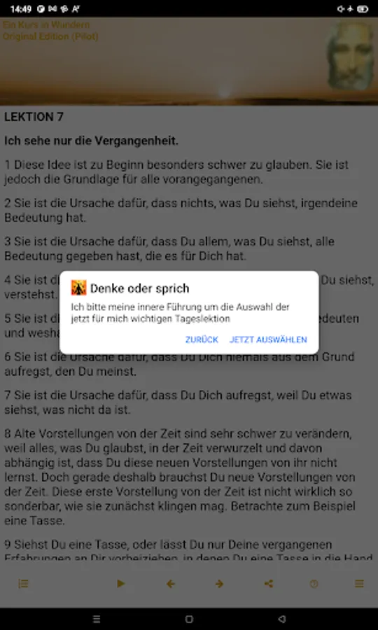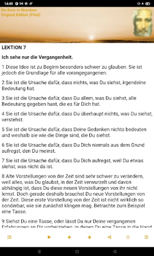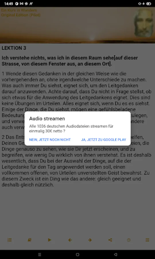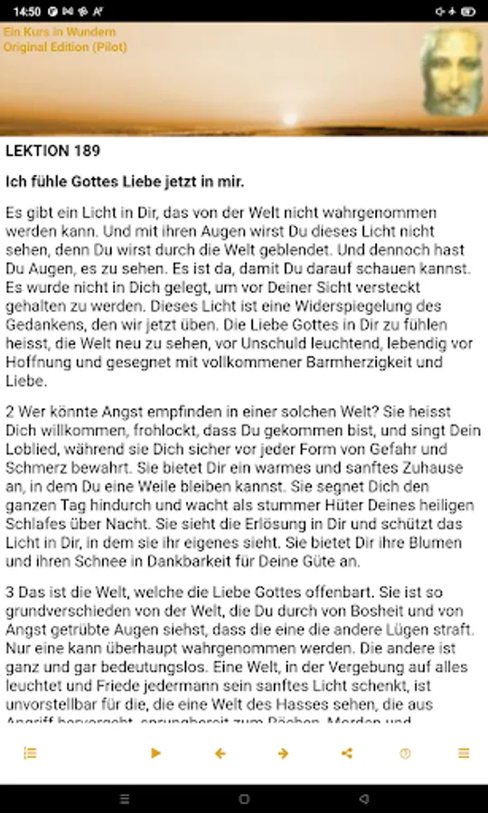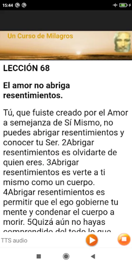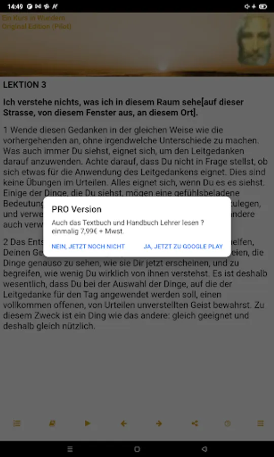 In the PRO version (In-APP €7.99 + VAT) it contains the TEXT book, MANUAL FOR THE TEACHER, Psychotherapy and prayer and you can listen with the mobile voice.