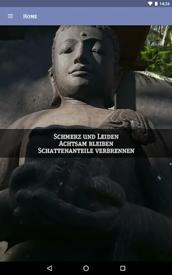 Seconds meditation: You are reading the short text on the home screen. The words lead you instantly into silence. Enjoy confront this moment without you mentally with the text.