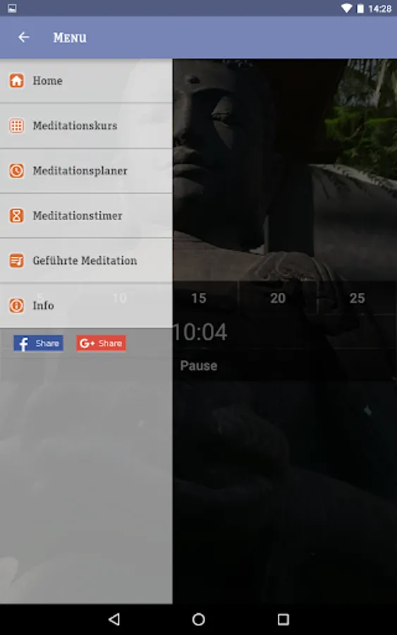 Meditation Timer: Here you can set meditation periods up to 25 minutes for your silent meditations. After a preparation time of 10 seconds of the first Zimbelton, after the desired time of the second sound.