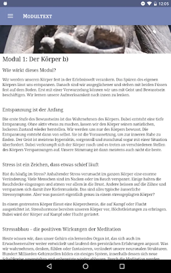The meditation course has detailed instructions for use. In the statistics you can see when and how often you have practiced the meditations. Only if you have a module worked, the next module is released. For the price you pay a lump sum, you can you need to repeat it as often. Regular updates of the issues and the meditations are included.
