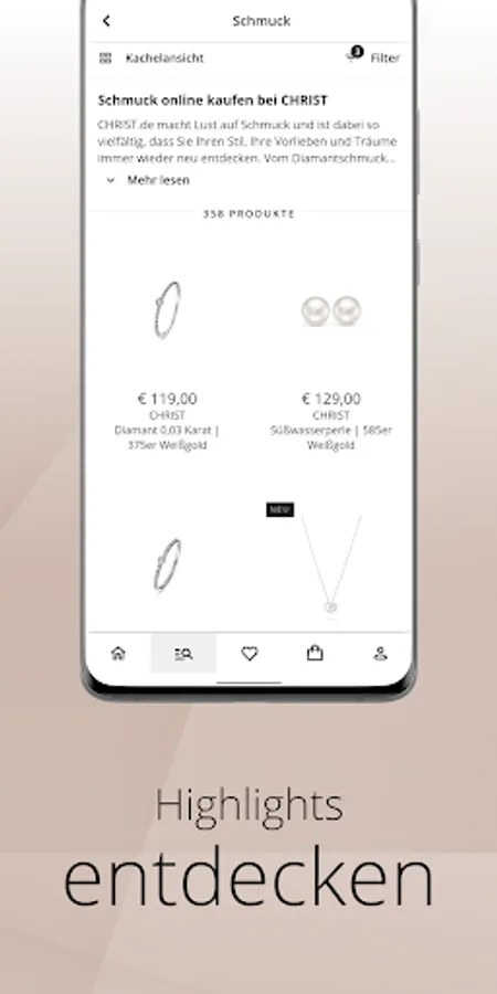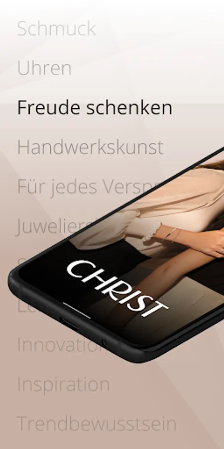 Discover our extensive range of watches, jewelry and accessories and find your favorite items from our selection of over 100 brands! Whether a women's watch or men's chronograph, engagement ring, pearl necklace or earring, you are guaranteed to find what you are looking for in our new CHRIST app!