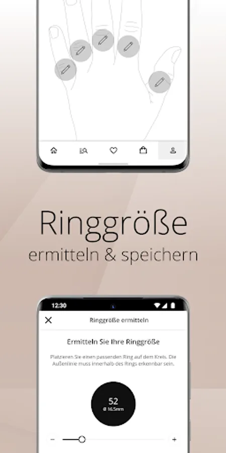 • With the "My ring sizes" function, you can easily determine the size and set a preferred size. This is then automatically preselected in the shop.