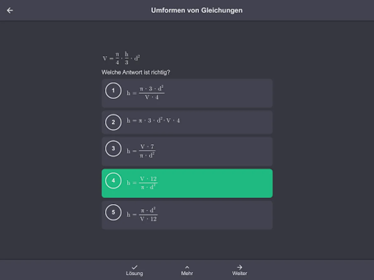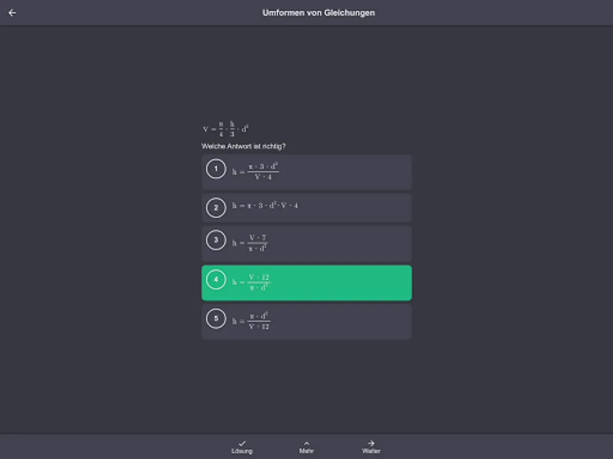 As in the exam, the questions each have five possible answers, only one of which is correct. When you have selected an answer, display the correct answer to move on to the next task. For many tasks, you can also view the detailed solution.