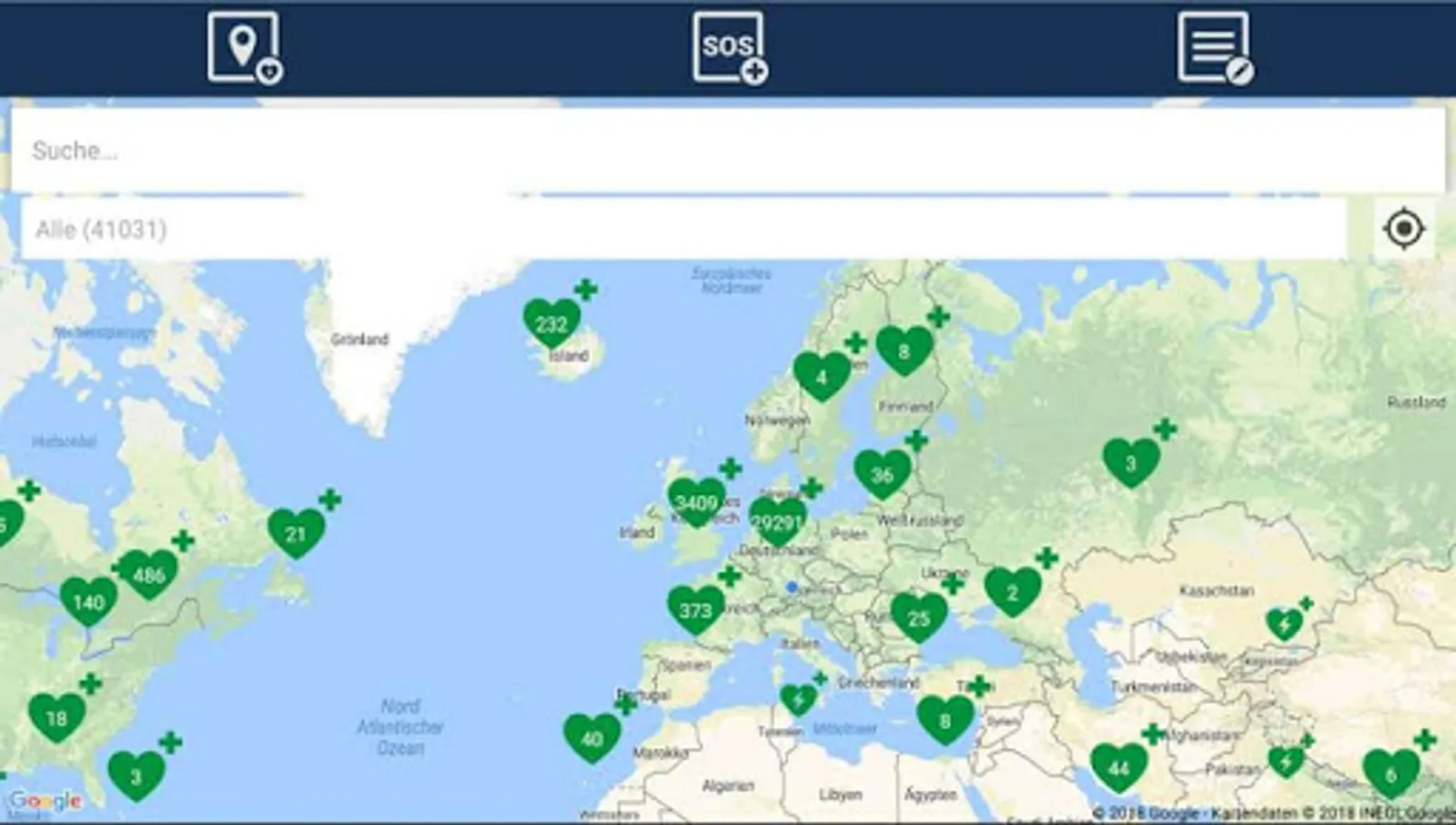 ♥ search and find a defibrillator, overview in one worldwide map