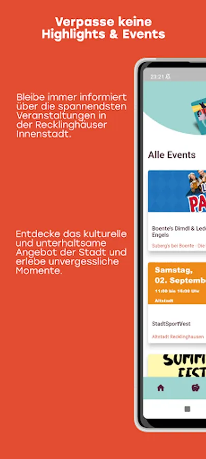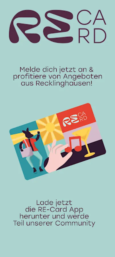 Download the RE-Card app now and become part of our community. Explore the entire city center of Recklinghausen, discover first-class shopping facilities, culinary highlights and experience unforgettable events. The RE-Card app - your perfect companion for a unique experience in Recklinghausen.