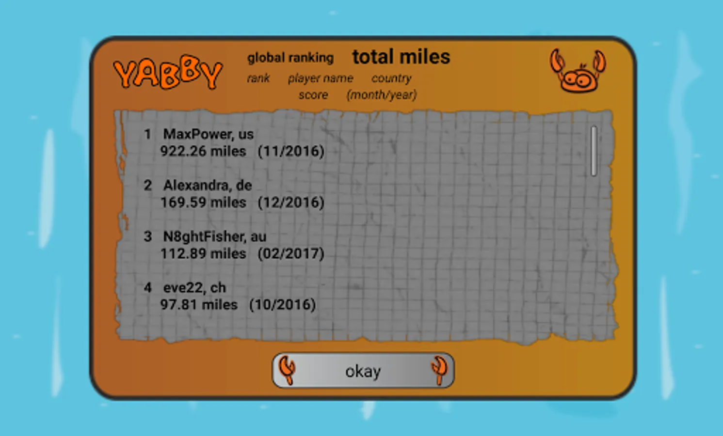 One more secret hint for you: YABBY will swim faster if you tilt your device in the according direction while pressing the arrow keys.