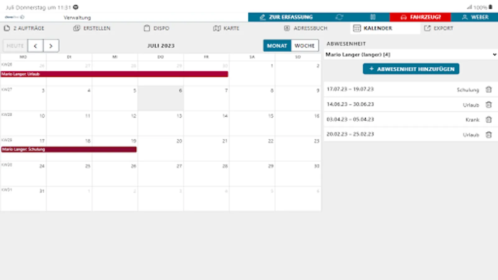 Scheduling overview of all orders per day for even more transparency - rescheduling with drag & drop