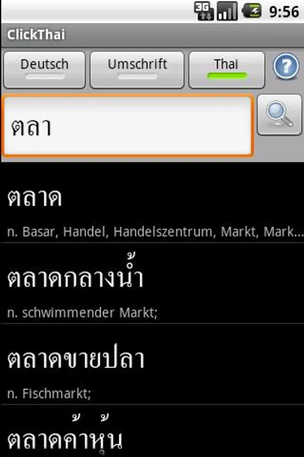 The vocabulary is impressive: almost 88,000 Thai and 78,000 German words are available for lightning-fast search. Not only the words for daily use are also many technical terms, eg. Example from medicine and technology that are needed when visiting a doctor or in the workshop.