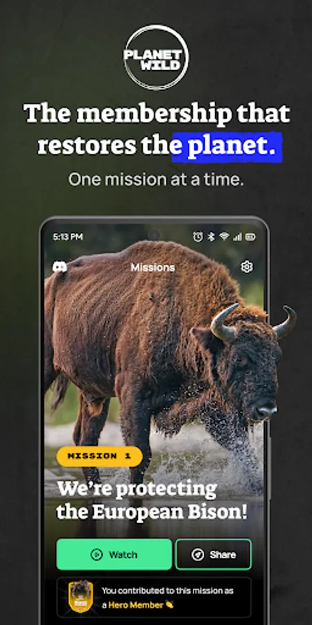 The team of Planet Wild works on the forefront of nature preservation, organizing monthly missions to bring back endangered species, clean up our oceans or rewild entire forests. By using the app, you can join our community of like-minded activists, and become a supporter of nature restoration projects.