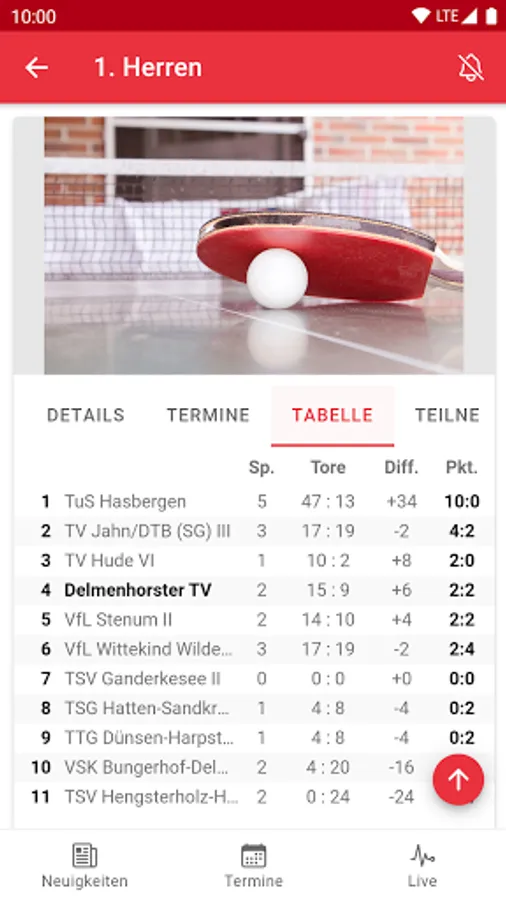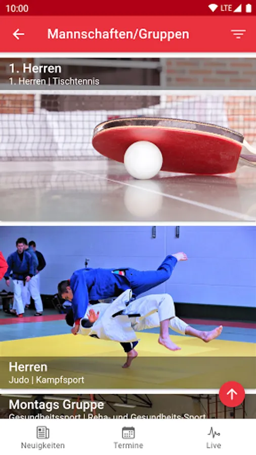 You can find all the news about the individual sports groups at a glance: game and meeting times, table status and team members. And if you can't be on site for a game, the live ticker allows you to cheer from afar.