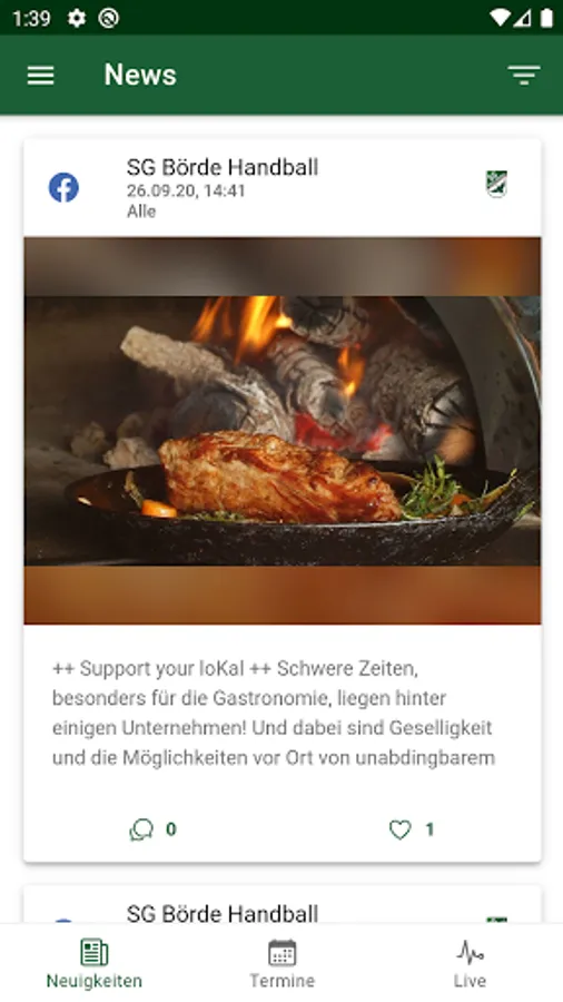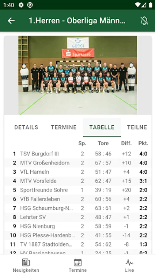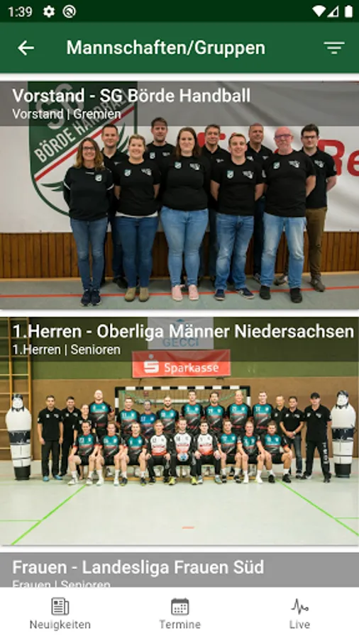 You can find all the news about the individual sports groups at a glance: game and meeting times, table status and team members. And if you can't be on site for a game, the live ticker enables you to cheer from afar.