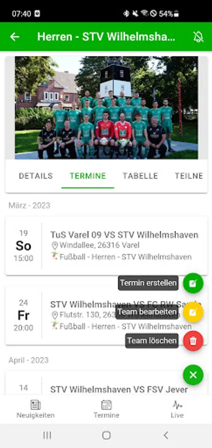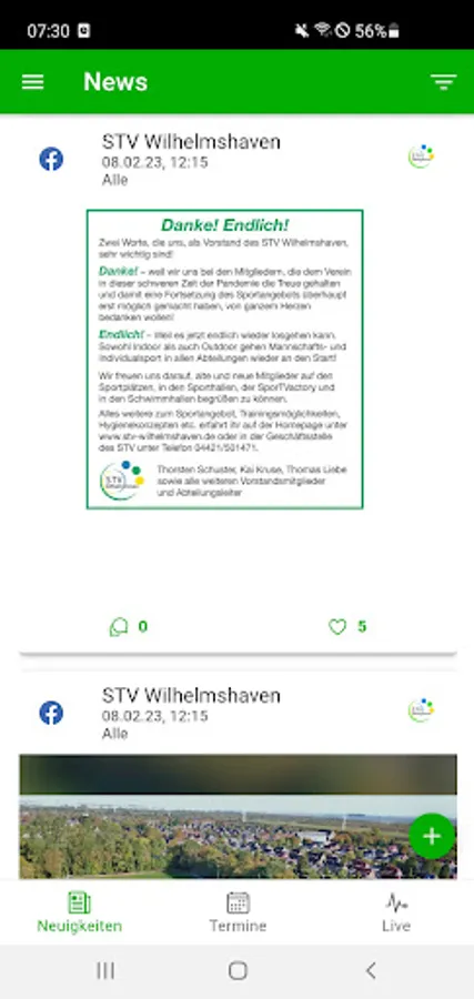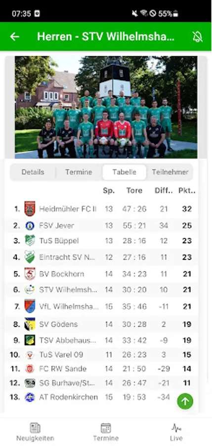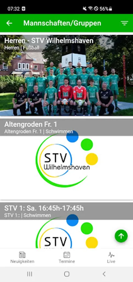You can find all the news about the individual sports groups at a glance: game and meeting times, standings and team members. And if you can't be there for a game, the live ticker makes it possible to cheer on from afar.