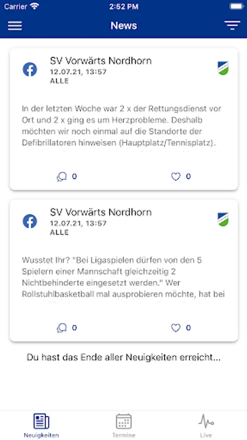 You can find all the news about the individual sports groups at a glance: game and meeting times, standings and team members. And if you can't be there for a game, the live ticker makes it possible to cheer on from afar.