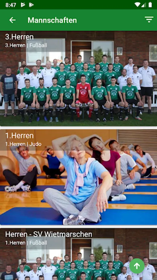 You can find all news about the individual sports groups at a glance: match and meeting times, standings and team members. And if you can’t be on site at games, the live ticker allows you to be excited from afar.