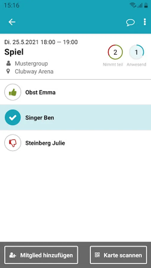 With Clubway Coach you can see immediately who is coming to the training, you can simply record the participants with one finger pressure or by reading the Clubway membership card.
