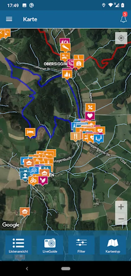 In addition to the map and satellite plan function, the app also has an "augmented reality application". You open the app and view the location and the objects via the camera function of your mobile device and information can be called up directly.