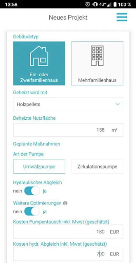 You can also use the app for non-residential buildings. However, there are no calculation examples for these very different buildings. For non-residential buildings, it is therefore best to use the pump check from co2online.