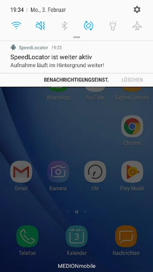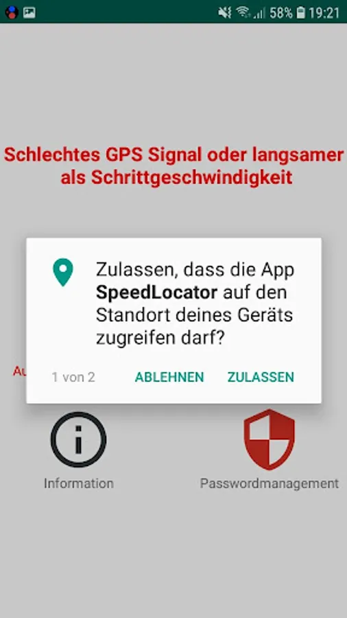 When uninstalling SpeedLocator or resetting the smartphone, all collected data will be lost!