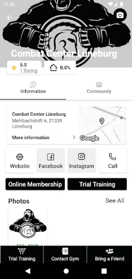 The app for all members of Combat Center Gym. It doesn't matter which club you train in, this is your app. Here you will find all information about your studio. Are you in a different city and looking for a Combat Center gym? With our practical overview of all studios, this is not a problem either. You have direct access to the training plan created by your coach on site and you are always up to date via the integrated push messages. The whole world of Combat Center in one app.