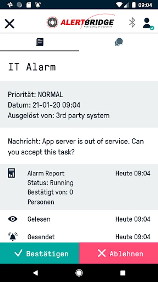 With the AlertBridge app you receive important messages and start alarms of all kinds.
