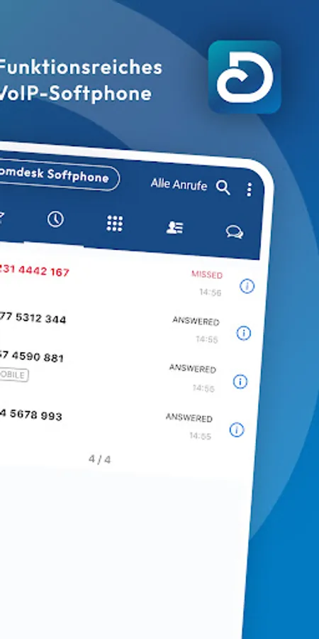 Die Comdesk Softphone App ist die perfekte Ergänzung zur Comdesk Cloud Telefonanlage für Unternehmen, die auch mobil erreichbar sein möchten. Aufgeräumt, intuitiv und modern - mit hoher Usebility und vielen Funktionen.