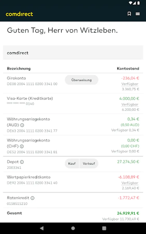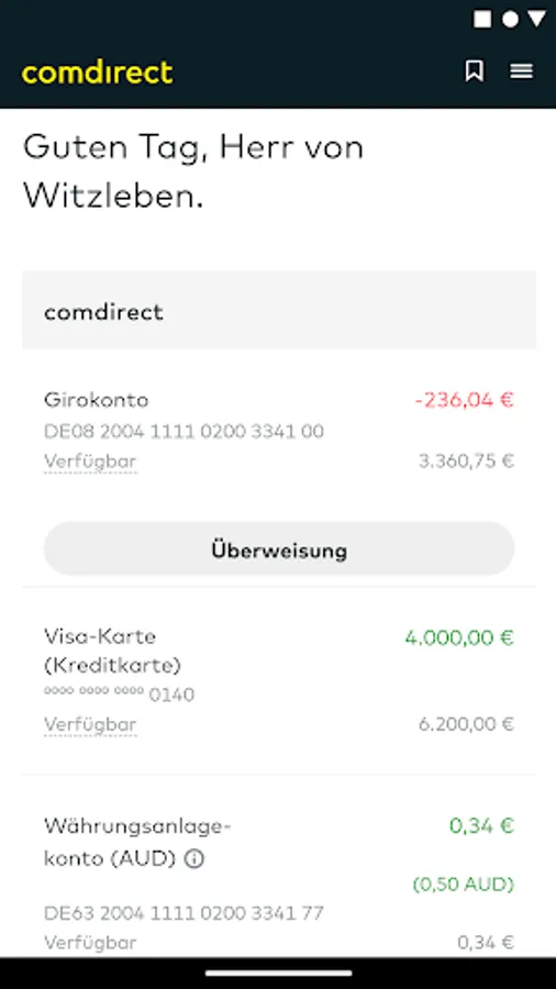 • Access to all comdirect accounts and accounts possible