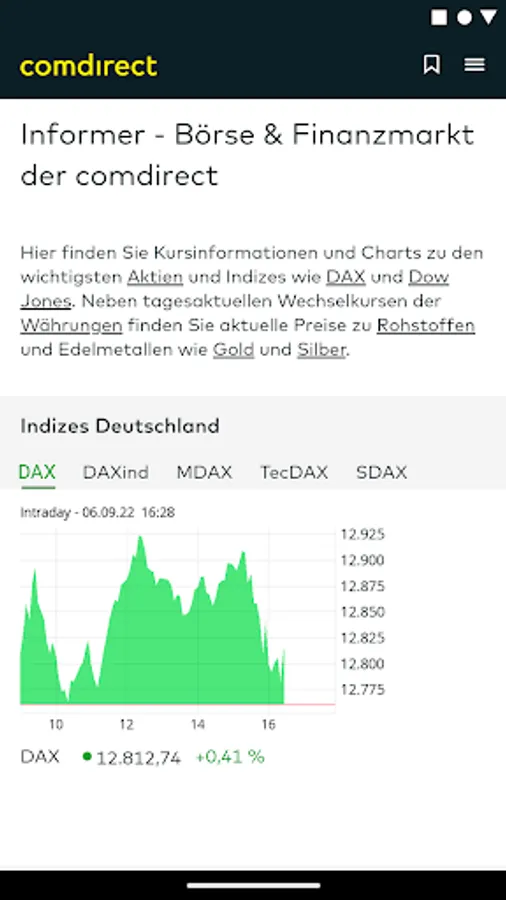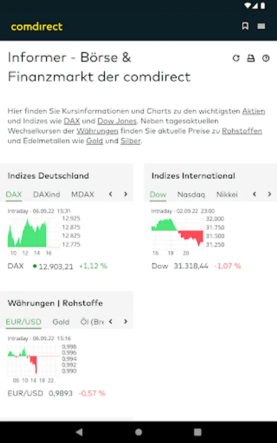 The comdirect mobile app offers you optimized access to selected web functions.