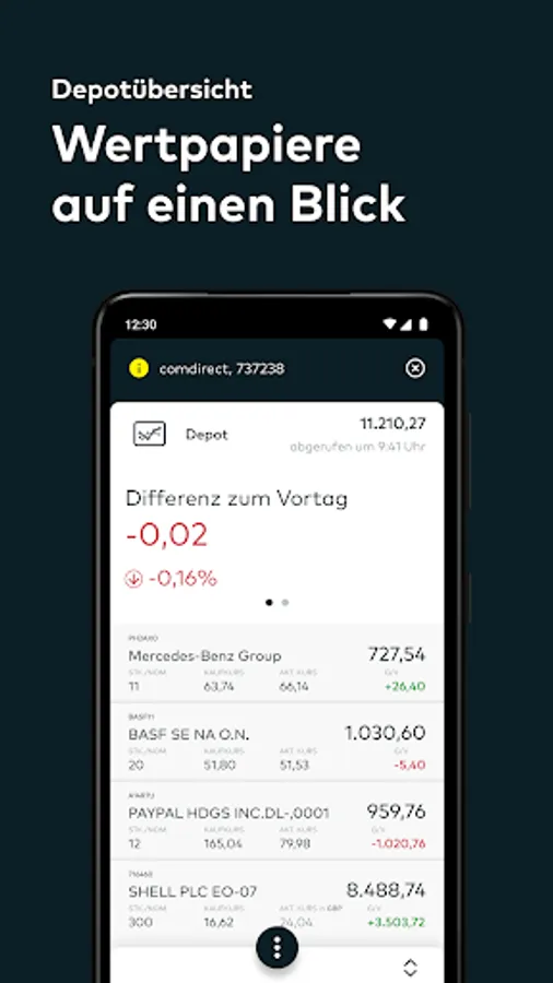 Do you have ideas and suggestions on what we can do better or add to? Contact us conveniently from the app - by phone or by email to app@comdirect.de. With your help, we can develop our new finance app step by step.