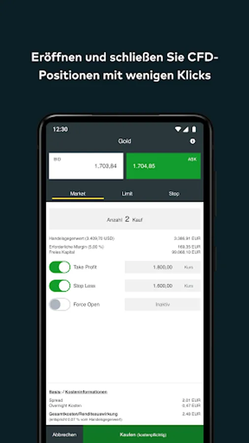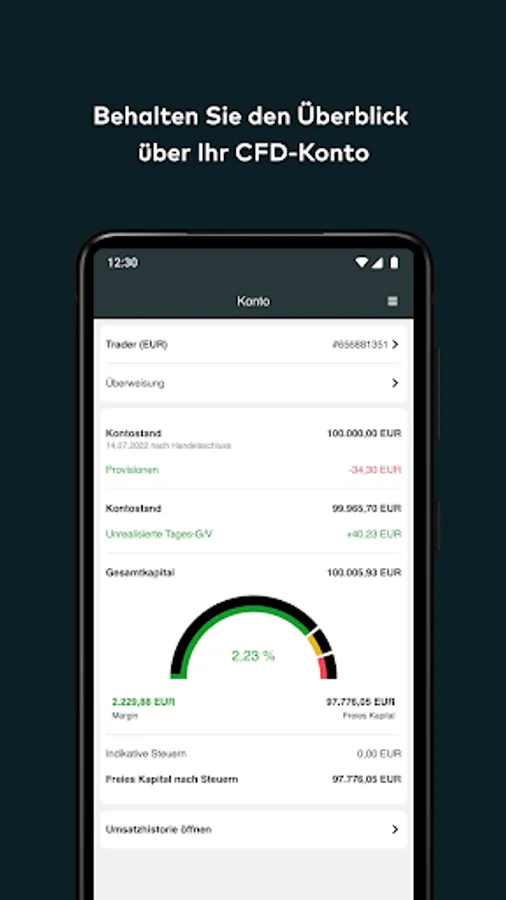The comdirect CFD app is optimized for smartphones and tablets. You need a comdirect account to use it. We are available 24/7 to answer any questions or suggestions you may have. By email to cfd@comdirect.de or by phone: