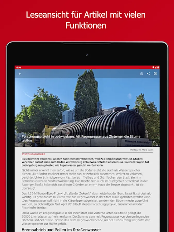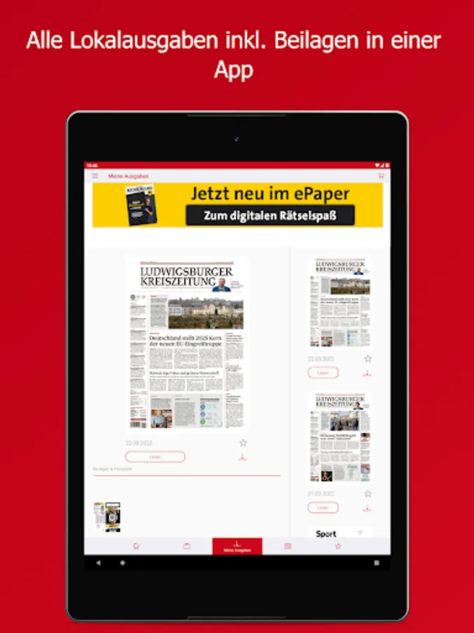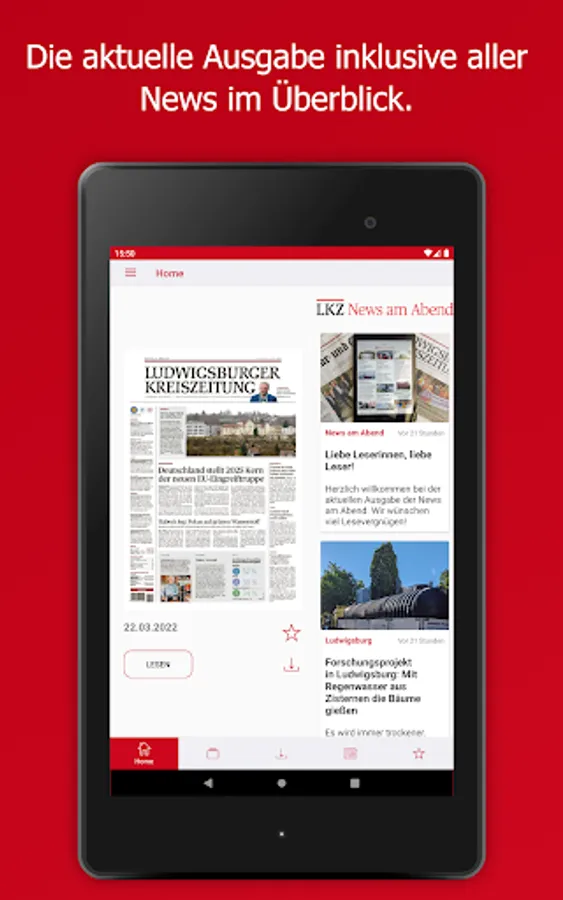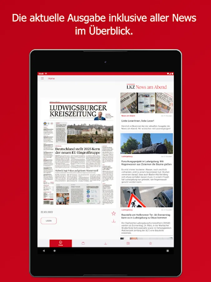 Experience the Ludwigsburger Kreiszeitung digitally on your Android tablet or smartphone - anytime, anywhere in the world! With all the contents of the printed newspaper and more!