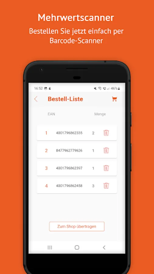 - Possibility of ordering articles directly from the catalogs using the EAN numbers