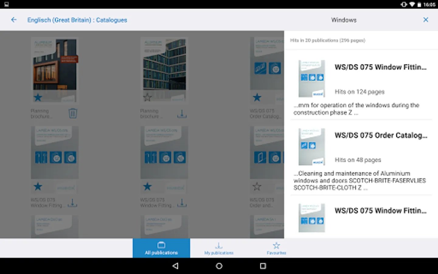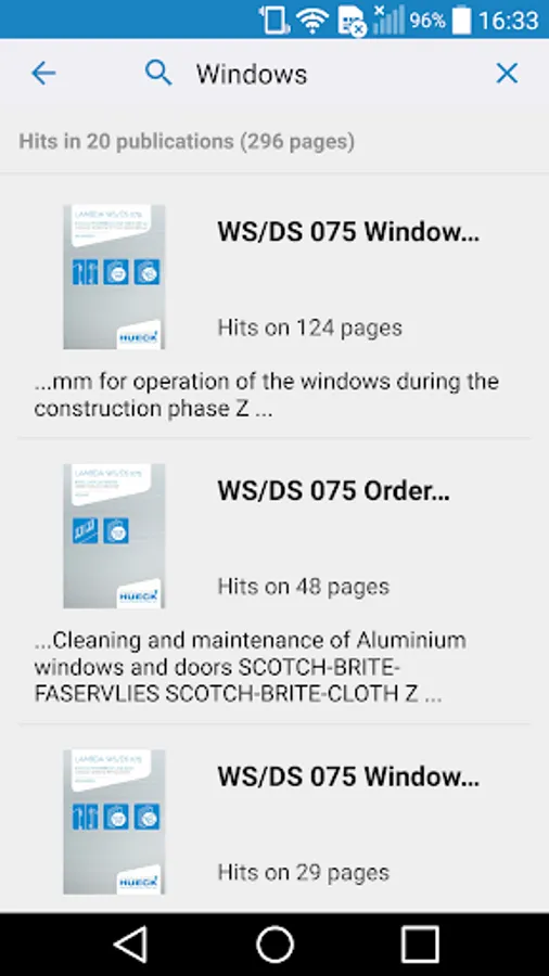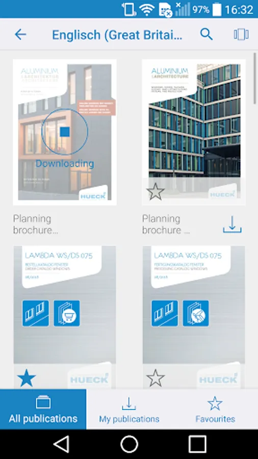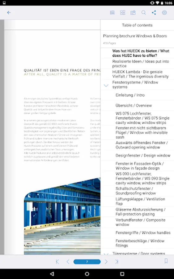 The HUECK Documentation App consists of an extensive documentation of HUECK window, door and façade systems made of aluminium, as well as interesting publications about the company. The contents were edited especially for the mobile access and are being updated continuously. The user has the opportunity to select the suitable document from a clearly structured shelf to look at it online or to load it down in order to access it offline. Thereby, the App informs automatically of potential updates for the documents, which can be brought up-to-date easily with one click.