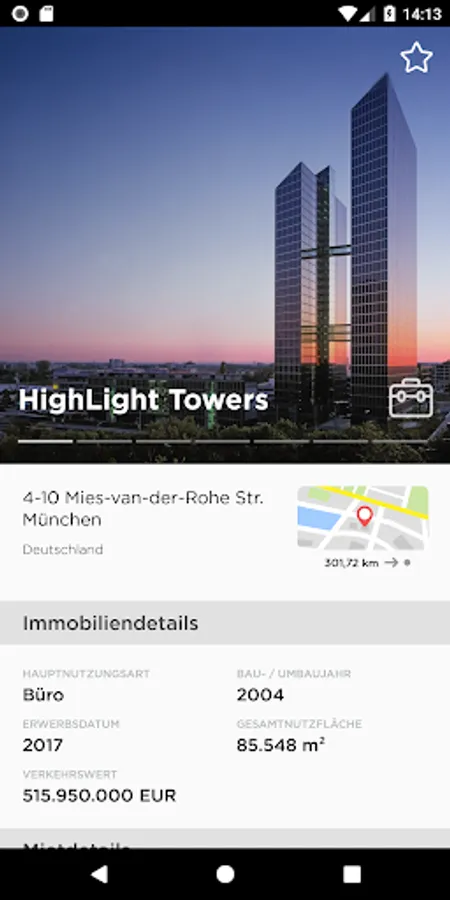 • For all hausInvest property: Object fact sheet with key data, interactive location map and image gallery of property