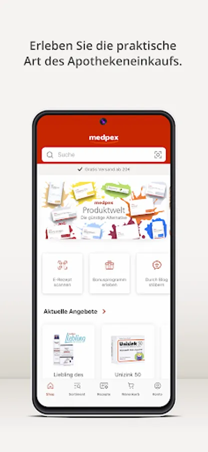 In the medpex app you can buy medicines, cosmetics and care products at particularly low prices. Free shipping from β¬20!